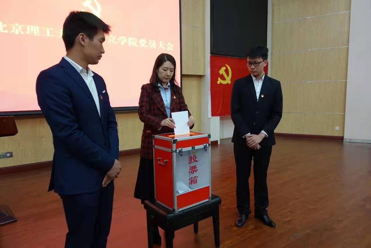 出席大会的正式党员以无记名投票的方式投出了神圣的一票。会议选举产生了中共北京理工大学徐特立学院委员会,以姓氏笔画为序,当选委员为:史建伟、张笈、张赞、赵昊、聂宁宁。