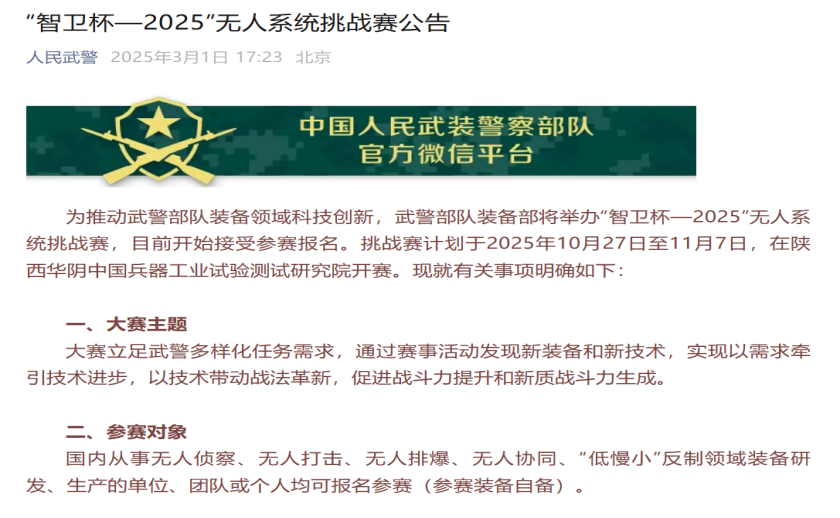 2025年11月7日,由武警部队装备部主办的“智卫杯-2025无人系统挑战赛”在陕西华阴中国兵器工业试验测试研究院圆满落幕。来自我校徐特立学院本科生团队“北理深瞳队”在无人侦察分赛决赛中表现出色,荣获全国第五名(高校组第一名)的优异成绩。