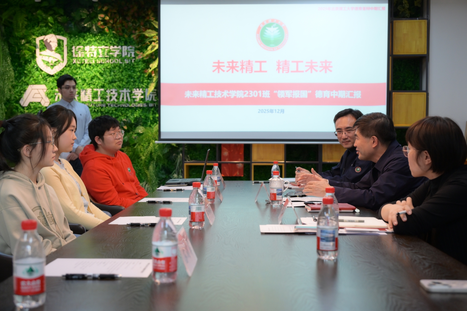 12月9日下午,北京理工大学未来精工技术学院2301班德育中期汇报会在良乡校区前沿交叉楼举行。校党委常委、副校长,班级德育导师李振键出席活动。徐特立学院/未来精工技术学院/特立书院党委副书记、副院长辛嘉洋,副院长张玮,带班辅导员及班级全体同学参加会议。